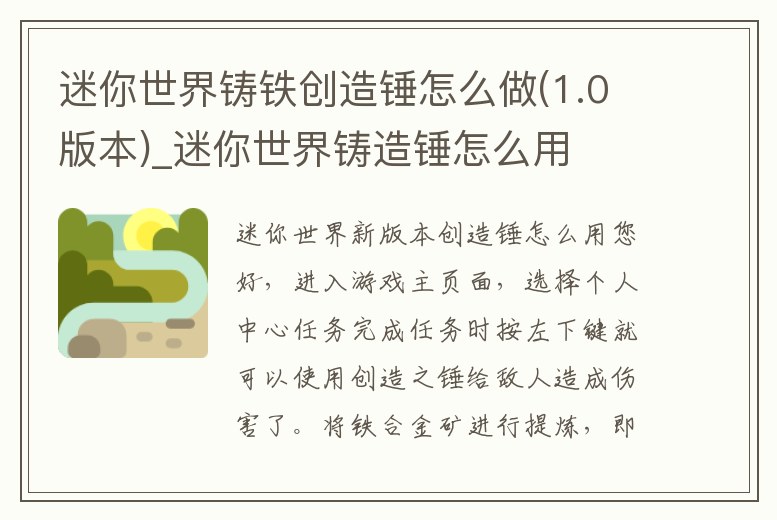 迷你世界鑄鐵創造錘怎么做(1.0版本)_迷你世界鑄造錘怎么用