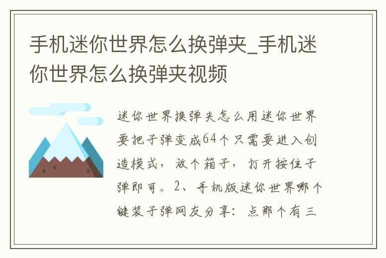 手機迷你世界怎么換彈夾_手機迷你世界怎么換彈夾視頻