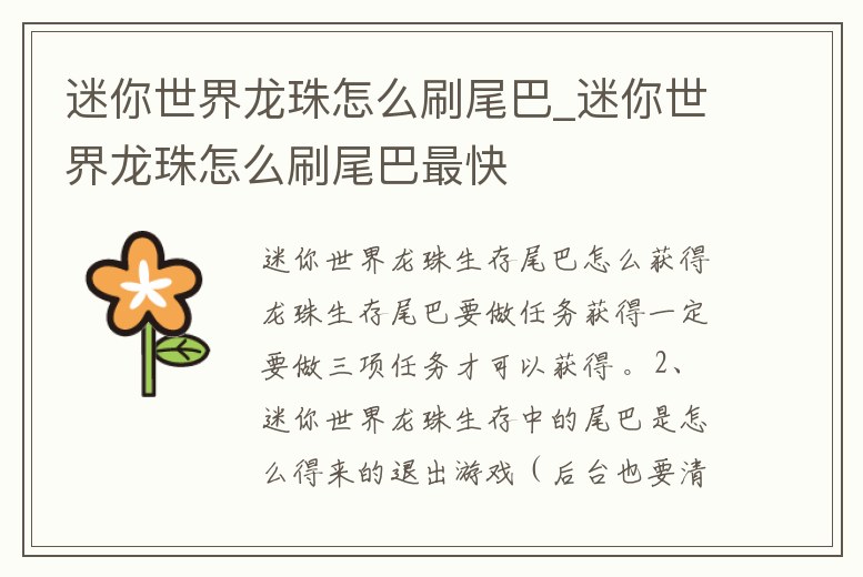 迷你世界龍珠怎么刷尾巴_迷你世界龍珠怎么刷尾巴最快