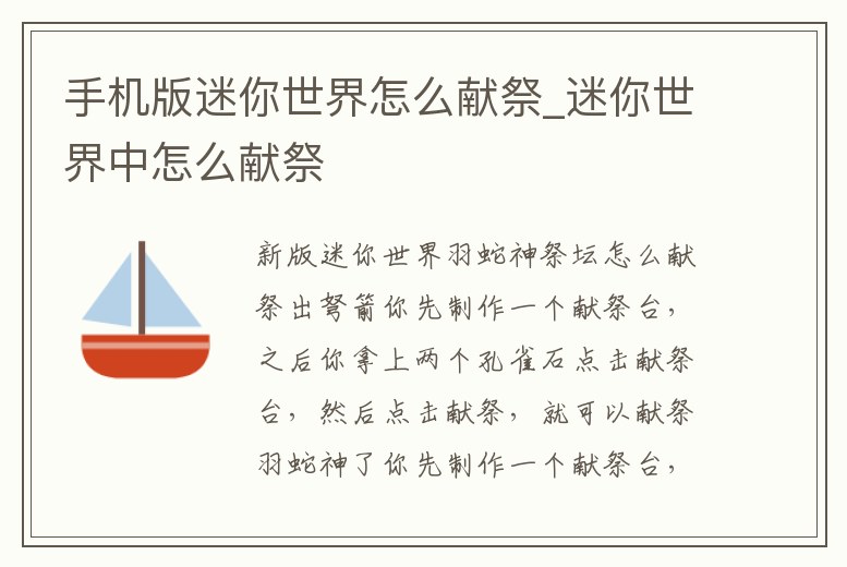 手機版迷你世界怎么獻祭_迷你世界中怎么獻祭