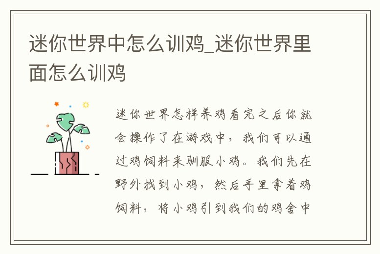 迷你世界中怎么訓雞_迷你世界里面怎么訓雞