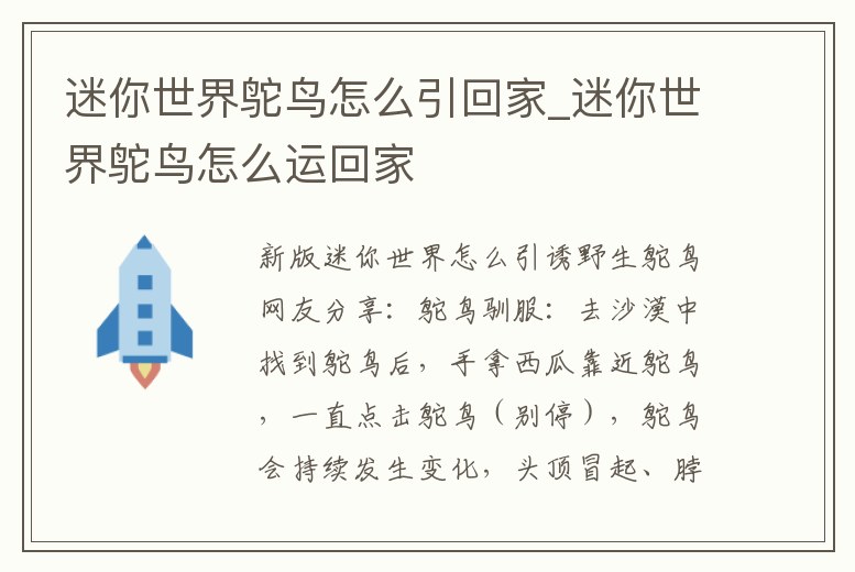 迷你世界鴕鳥怎么引回家_迷你世界鴕鳥怎么運(yùn)回家