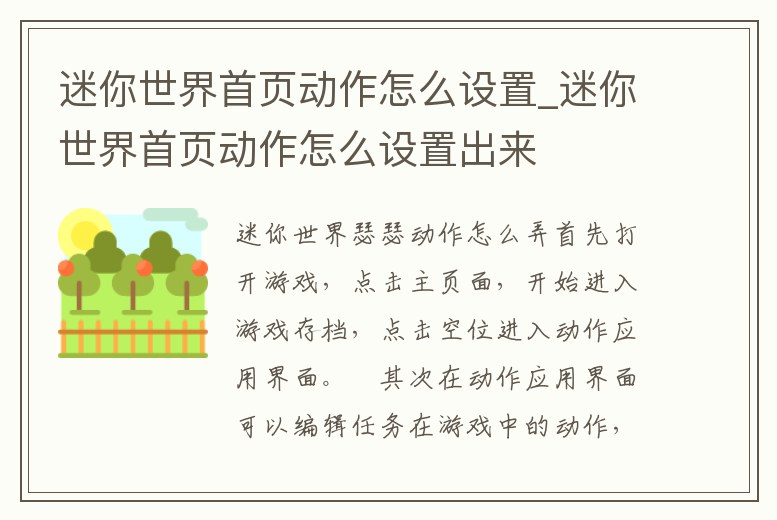 迷你世界首頁動作怎么設置_迷你世界首頁動作怎么設置出來