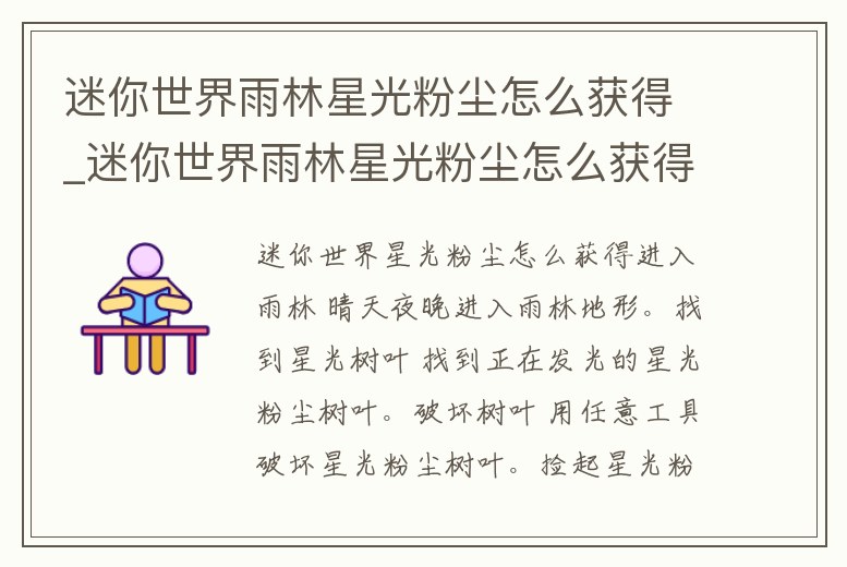 迷你世界雨林星光粉塵怎么獲得_迷你世界雨林星光粉塵怎么獲得視頻