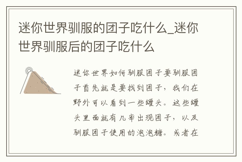 迷你世界馴服的團子吃什么_迷你世界馴服后的團子吃什么