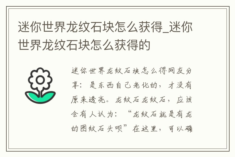 迷你世界龍紋石塊怎么獲得_迷你世界龍紋石塊怎么獲得的