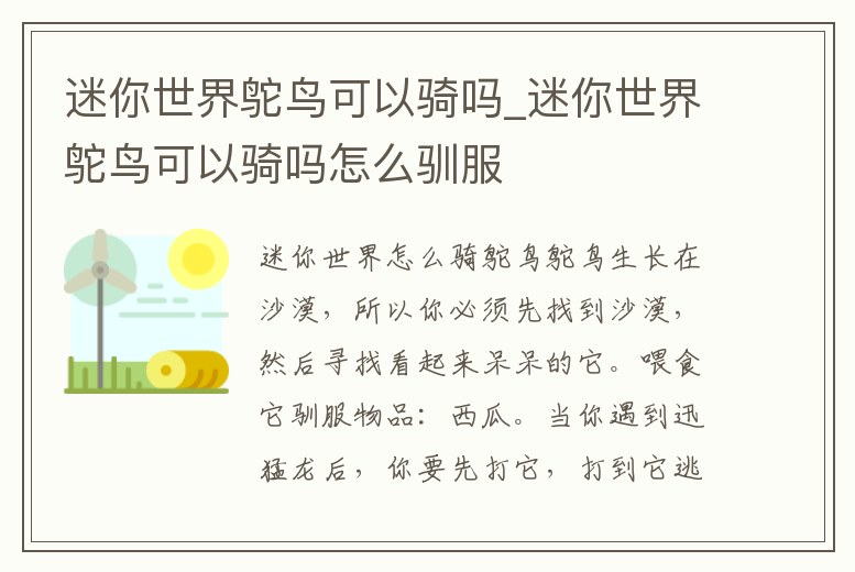 迷你世界鴕鳥可以騎嗎_迷你世界鴕鳥可以騎嗎怎么馴服