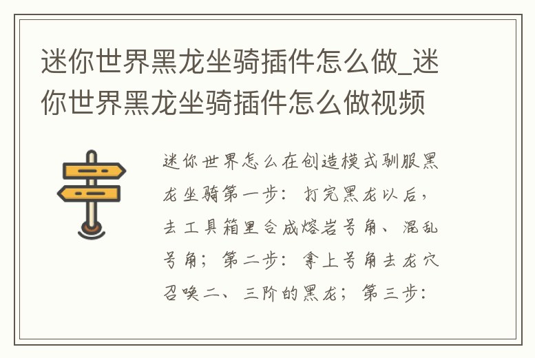 迷你世界黑龍坐騎插件怎么做_迷你世界黑龍坐騎插件怎么做視頻