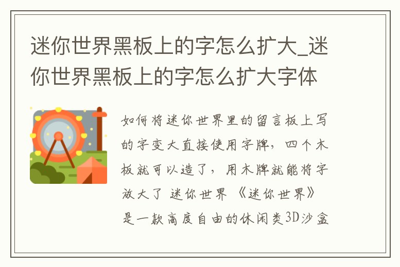 迷你世界黑板上的字怎么擴大_迷你世界黑板上的字怎么擴大字體
