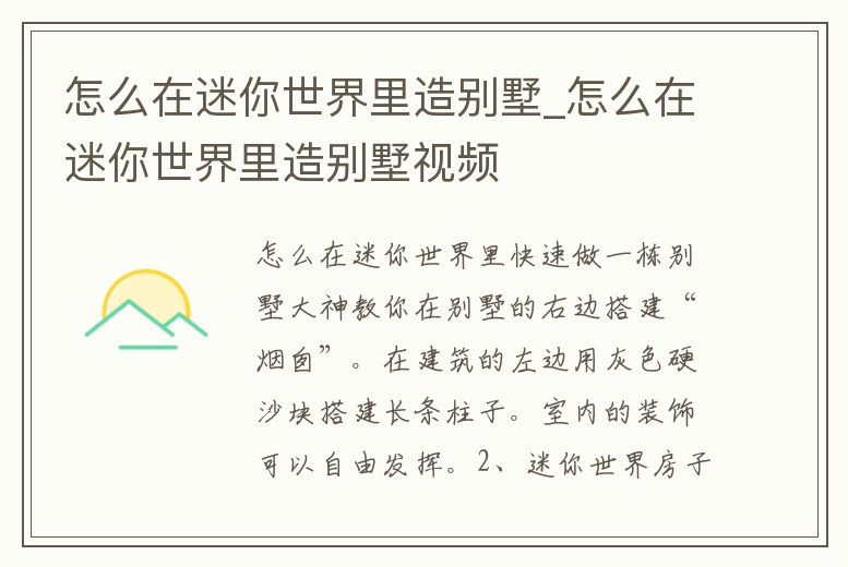怎么在迷你世界里造別墅_怎么在迷你世界里造別墅視頻