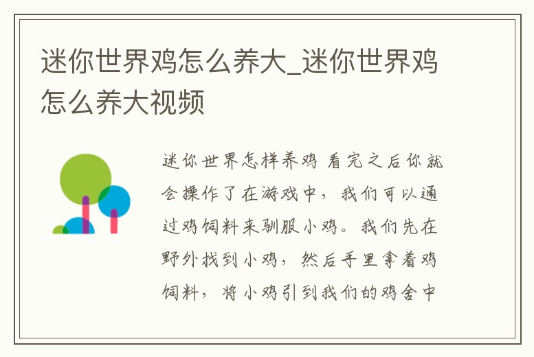 迷你世界雞怎么養(yǎng)大_迷你世界雞怎么養(yǎng)大視頻