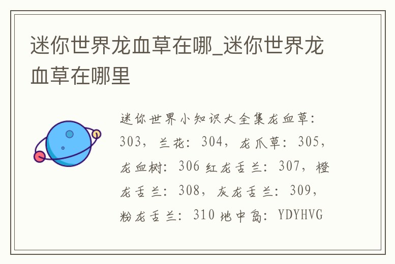 迷你世界龍血草在哪_迷你世界龍血草在哪里