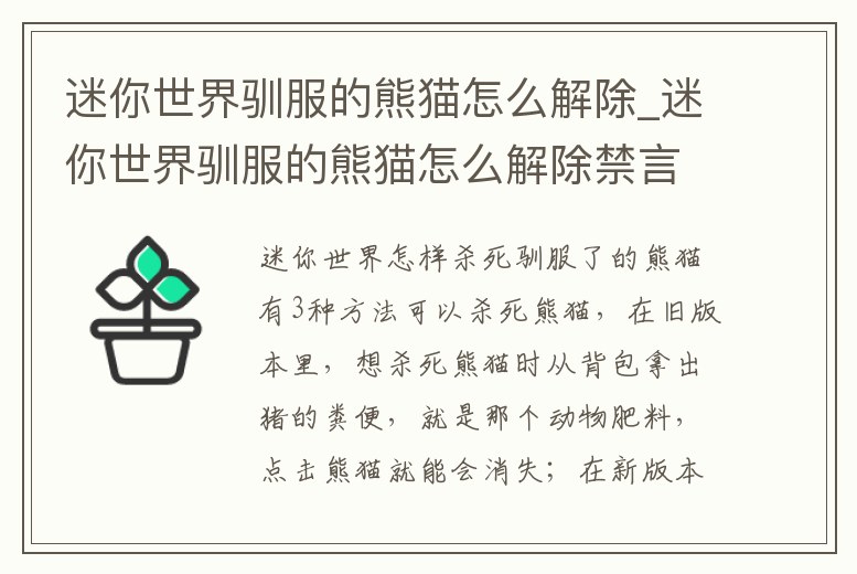 迷你世界馴服的熊貓怎么解除_迷你世界馴服的熊貓怎么解除禁言