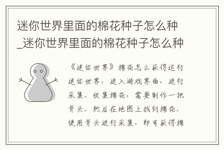 迷你世界里面的棉花種子怎么種_迷你世界里面的棉花種子怎么種出來