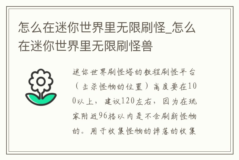 4、迷你世界刷怪塔怎樣才能讓他刷怪制作刷怪塔需要注意些什么