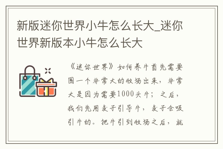新版迷你世界小牛怎么長大_迷你世界新版本小牛怎么長大