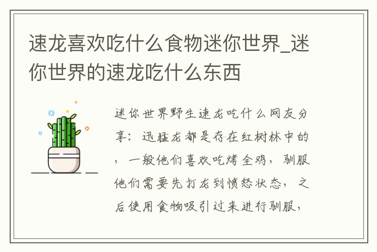 - 速龍喜歡吃什么食物迷你世界_迷你世界的速龍吃什么東西