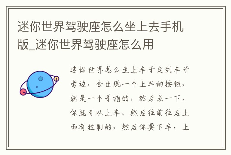 迷你世界駕駛座怎么坐上去手機版_迷你世界駕駛座怎么用