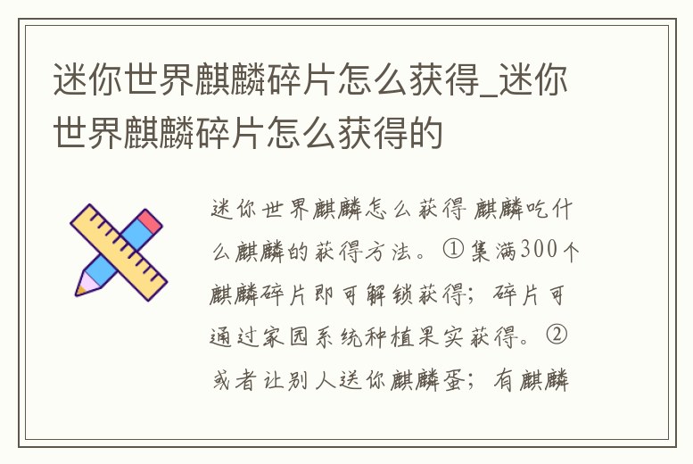 迷你世界麒麟碎片怎么獲得_迷你世界麒麟碎片怎么獲得的