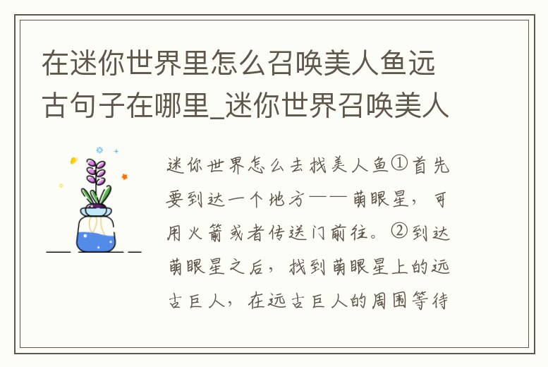 在迷你世界里怎么召喚美人魚遠古句子在哪里_迷你世界召喚美人魚教程