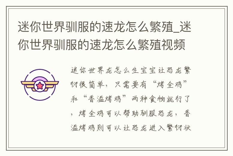 迷你世界馴服的速龍怎么繁殖_迷你世界馴服的速龍怎么繁殖視頻