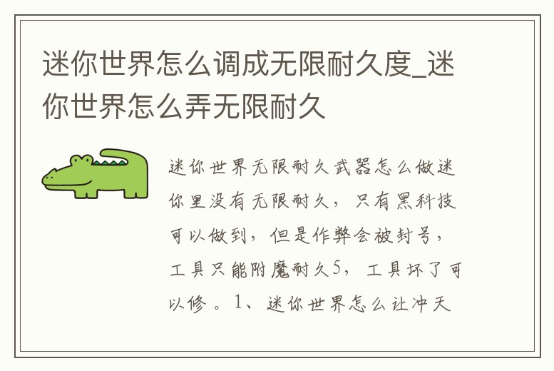 迷你里沒有無限耐久,只有黑科技可以做到,但是作弊會被封號,工具只能附魔耐久5,工具壞了可以修 。
