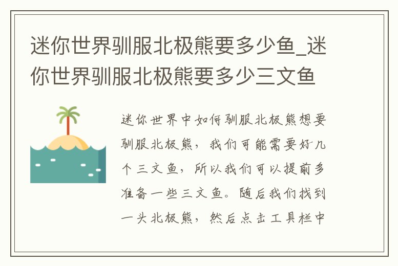 迷你世界馴服北極熊要多少魚_迷你世界馴服北極熊要多少三文魚