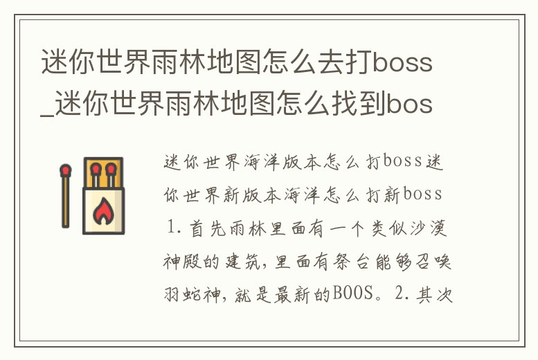 迷你世界雨林地圖怎么去打boss_迷你世界雨林地圖怎么找到boss