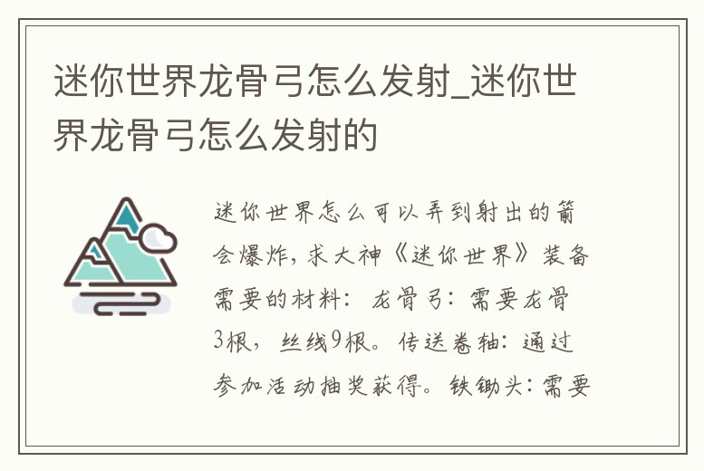 - 迷你世界龍骨弓怎么發(fā)射_迷你世界龍骨弓怎么發(fā)射的
