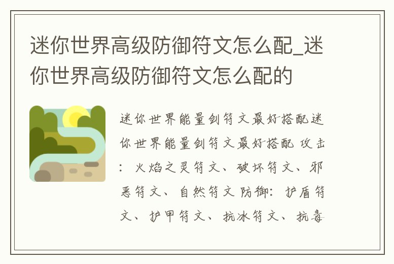 迷你世界高級防御符文怎么配_迷你世界高級防御符文怎么配的