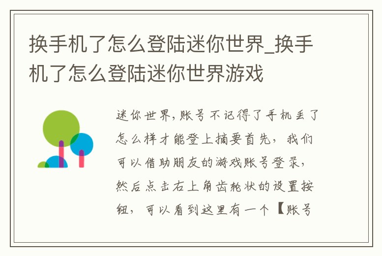 換手機了怎么登陸迷你世界_換手機了怎么登陸迷你世界游戲