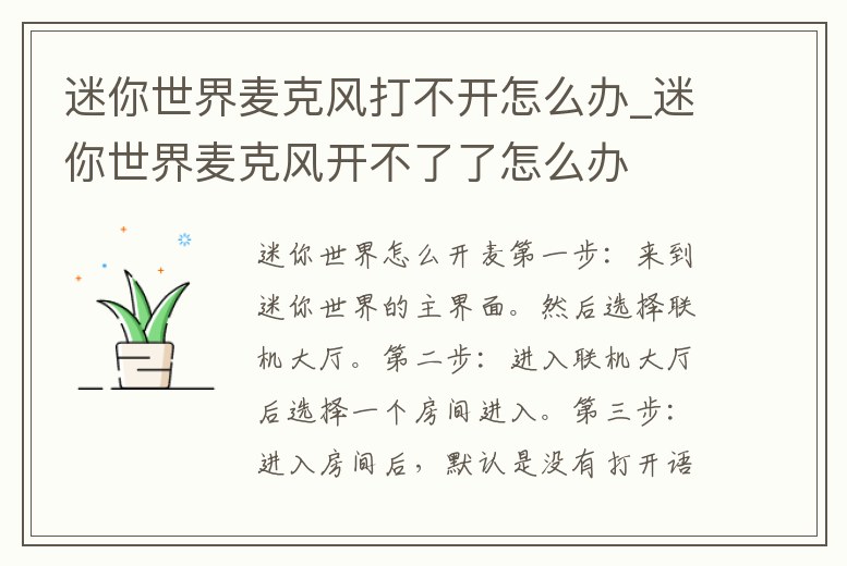 迷你世界麥克風打不開怎么辦_迷你世界麥克風開不了了怎么辦