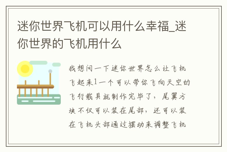 迷你世界飛機可以用什么幸福_迷你世界的飛機用什么