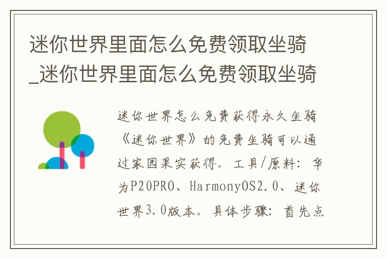 迷你世界里面怎么免費領取坐騎_迷你世界里面怎么免費領取坐騎呢