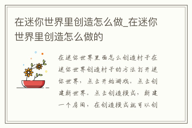 在迷你世界里創造怎么做_在迷你世界里創造怎么做的