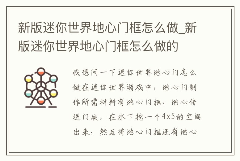新版迷你世界地心門框怎么做_新版迷你世界地心門框怎么做的