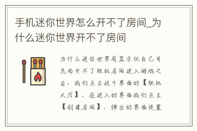 手機迷你世界怎么開不了房間_為什么迷你世界開不了房間