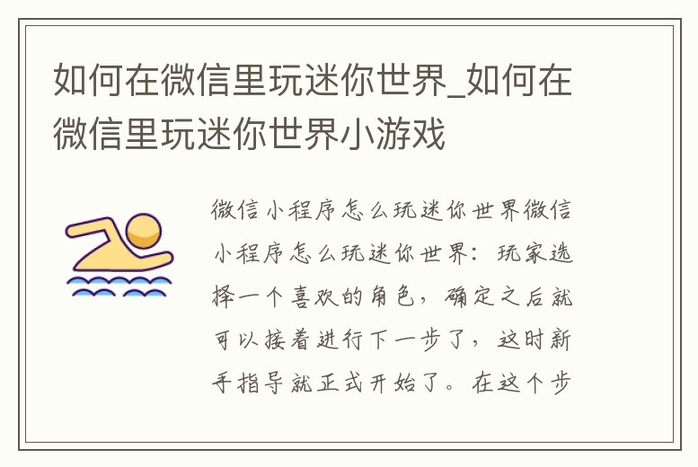 如何在微信里玩迷你世界_如何在微信里玩迷你世界小游戲