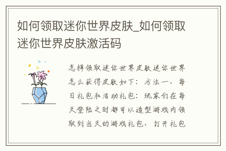如何領取迷你世界皮膚_如何領取迷你世界皮膚激活碼