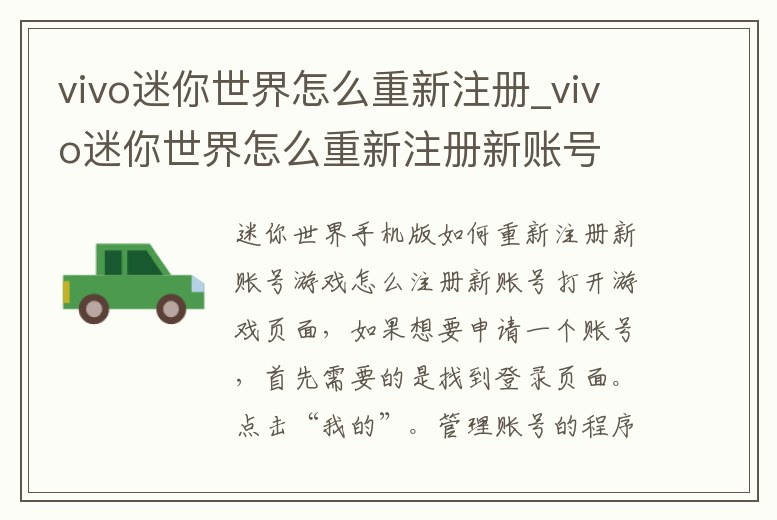 vivo迷你世界怎么重新注冊_vivo迷你世界怎么重新注冊新賬號