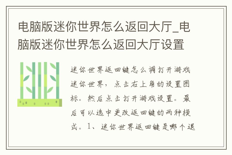 電腦版迷你世界怎么返回大廳_電腦版迷你世界怎么返回大廳設置