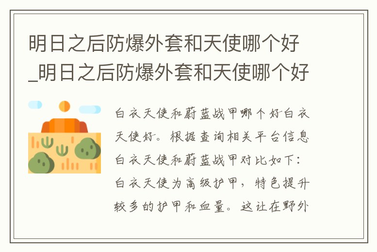 明日之后防爆外套和天使哪個好_明日之后防爆外套和天使哪個好一點