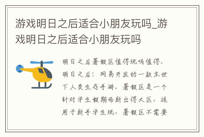 游戲明日之后適合小朋友玩嗎_游戲明日之后適合小朋友玩嗎