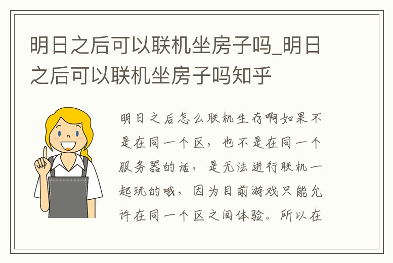 明日之后可以聯(lián)機坐房子嗎_明日之后可以聯(lián)機坐房子嗎知乎