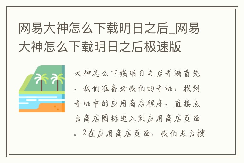 網易大神怎么下載明日之后_網易大神怎么下載明日之后極速版