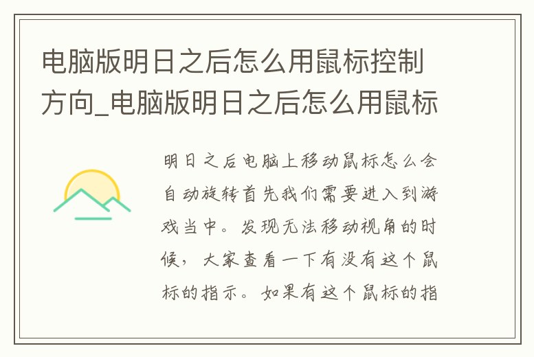 - 電腦版明日之后怎么用鼠標(biāo)控制方向_電腦版明日之后怎么用鼠標(biāo)控制方向移動(dòng)