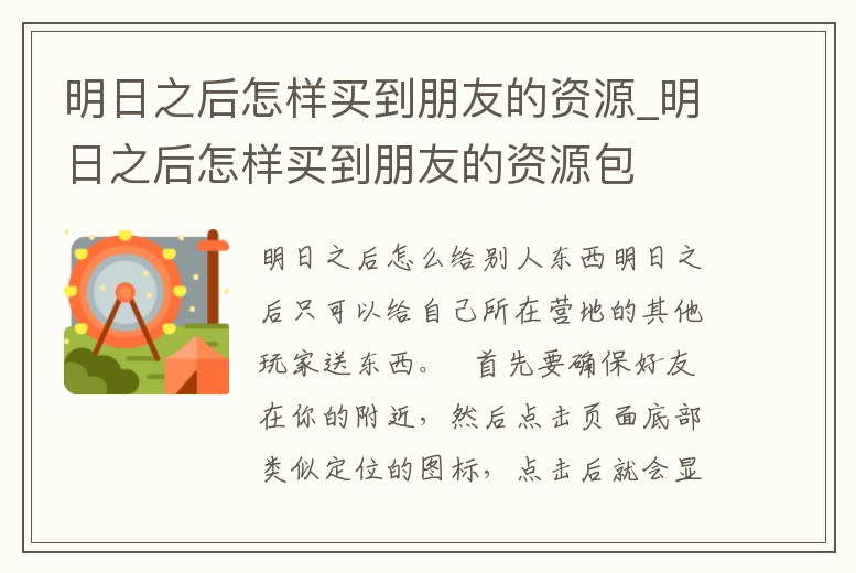 明日之后怎樣買到朋友的資源_明日之后怎樣買到朋友的資源包