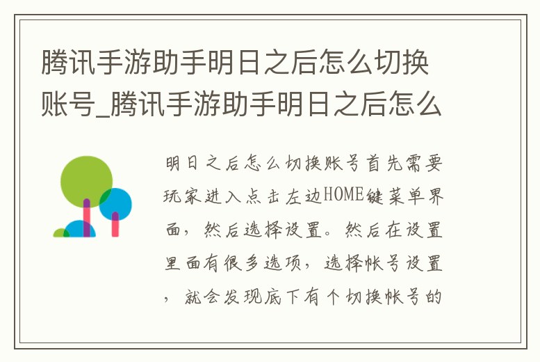 - 騰訊手游助手明日之后怎么切換賬號(hào)_騰訊手游助手明日之后怎么切換賬號(hào)登陸