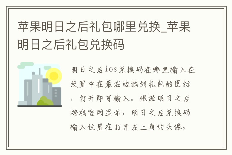 蘋果明日之后禮包哪里兌換_蘋果明日之后禮包兌換碼