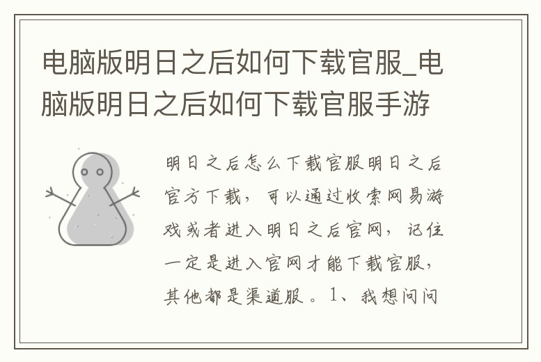 - 電腦版明日之后如何下載官服_電腦版明日之后如何下載官服手游